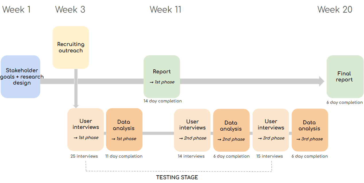 Ongoing communication: Established comms channel across Product, Market, and Research teams sharing weekly progress updates, early insights, and raising flags.
